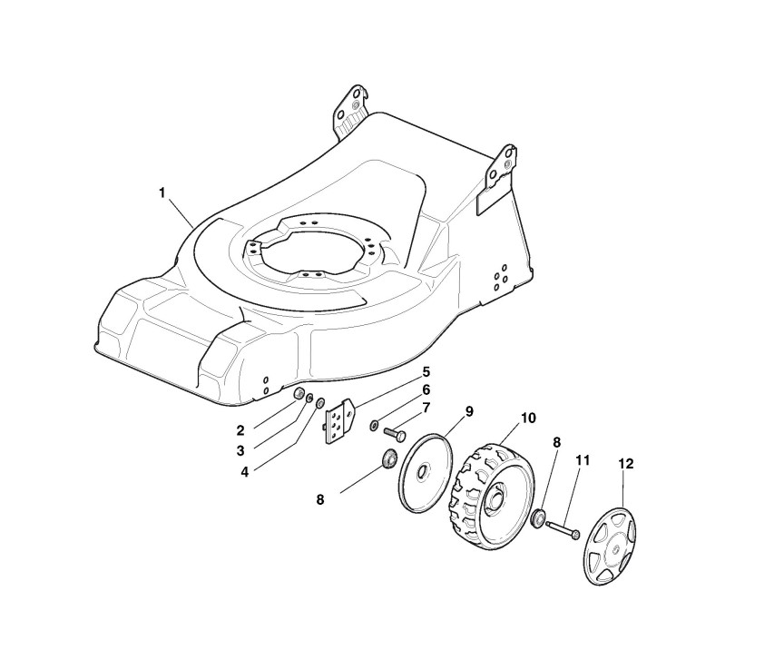 Hier finden Sie alle Ersatzteile von Castelgarden Elektrorasenmäher NG 410 (Geräte ID 293207665/07) ab 2008 aus der Zeichnung Gehäuse, Schnittverstellung, Radkappe: