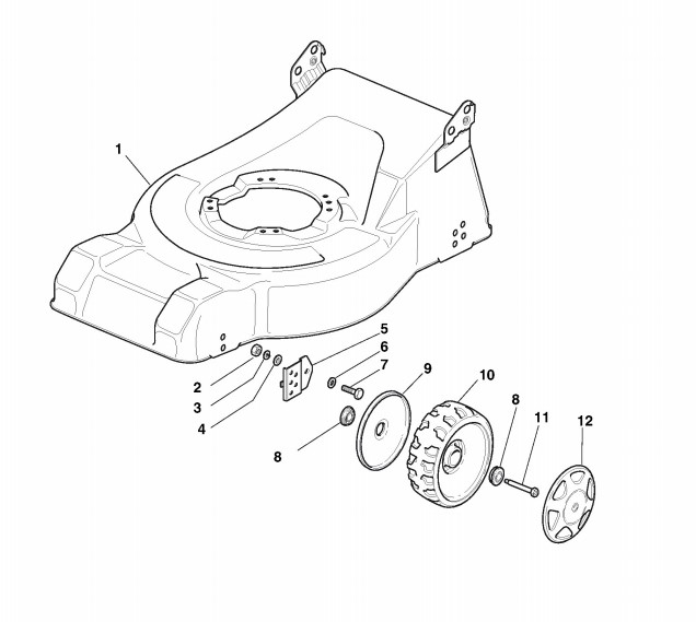 Hier finden Sie alle Ersatzteile von Castelgarden Benzinrasenmäher ab 2008 NG 464 - B (ID 293516025/08) aus der Zeichnung Gehäuse, Schnittverstellung und Radkappe: