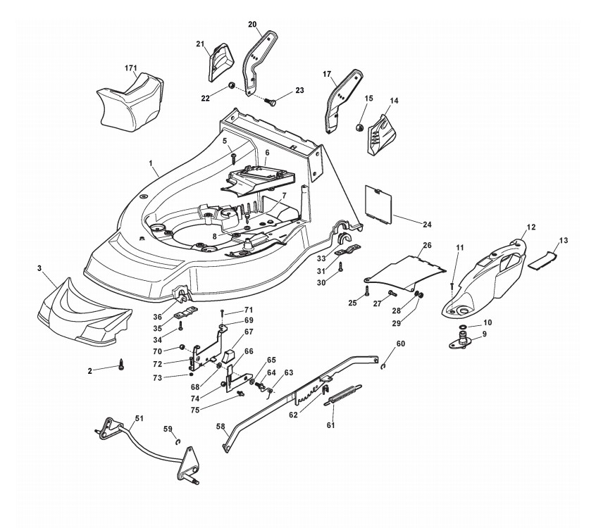 Hier finden Sie alle Ersatzteile von Castelgarden Benzinrasenmäher ab 2016 PAN 504 TR - B (ID 295505023/16) aus der Zeichnung Gehäuse und Schnittverstellung (1):