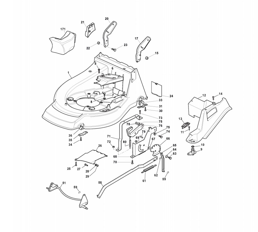 Hier finden Sie alle Ersatzteile von Castelgarden Benzinrasenmäher ab 2008 TDA 534 TR - B (ID 292155023/F8) aus der Zeichnung Gehäuse und Schnittverstellung (1):