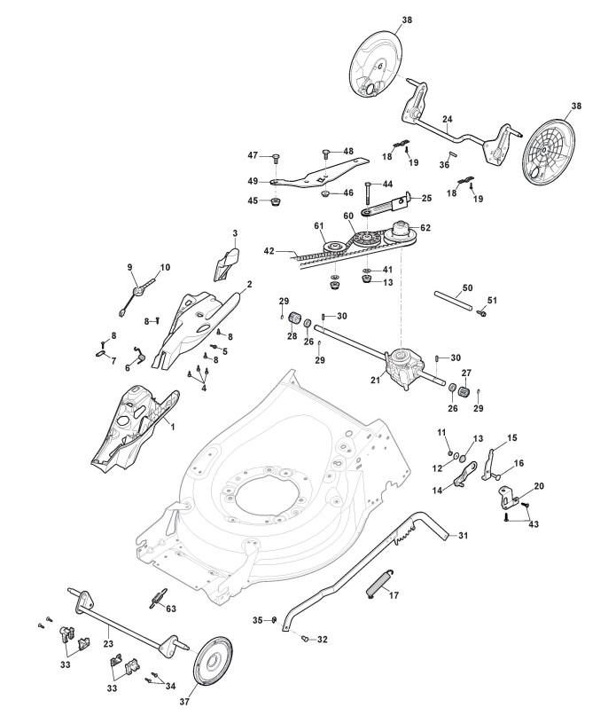 Hier finden Sie alle Ersatzteile von Castelgarden Benzinrasenmäher ab 2016 XS 55 HVW4 (ID 294557838/C16) aus der Zeichnung Gehäuse und Schnittverstellung (1):