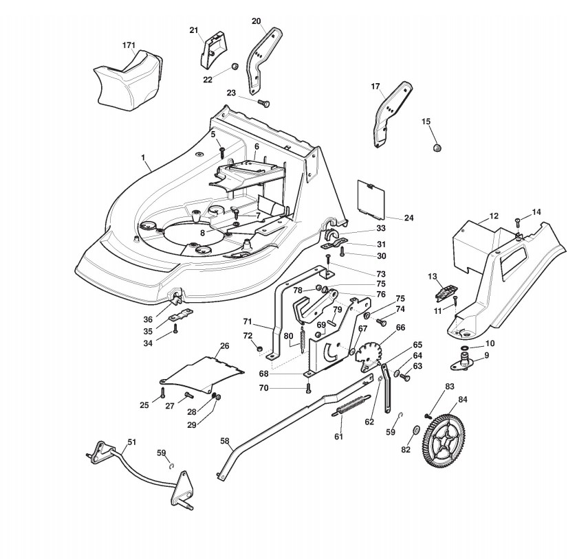 Hier finden Sie alle Ersatzteile von Castelgarden Benzinrasenmäher ab 2016 NP 534 WTRV - H (ID 292157833/10) aus der Zeichnung Gehäuse und Schnittverstellung (2):