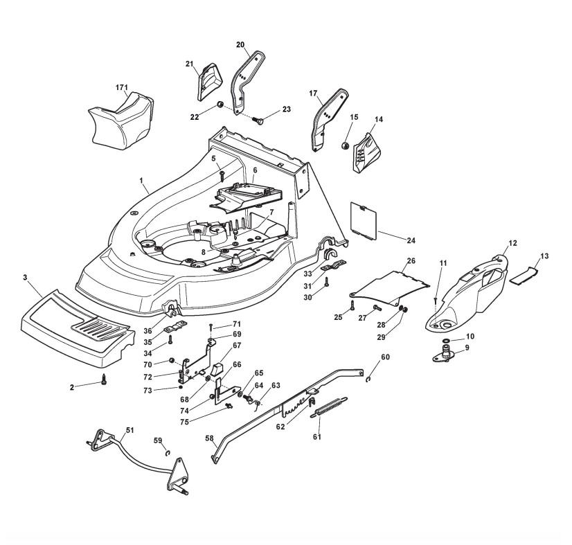 Hier finden Sie alle Ersatzteile von Castelgarden Benzinrasenmäher ab 2008 SPA 504 TR - B (ID 295509023/08) aus der Zeichnung Gehäuse und Schnittverstellung (2):