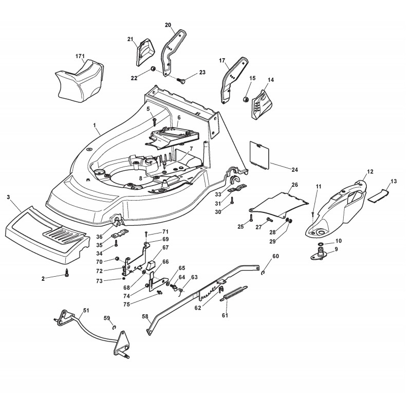 Hier finden Sie alle Ersatzteile von Castelgarden Benzinrasenmäher ab 2008 NGA 504 TR - B (ID 295502025/08) aus der Zeichnung Gehäuse und Schnittverstellung (2):