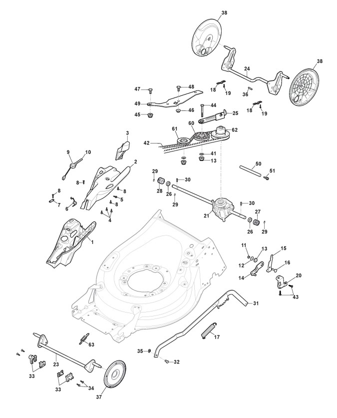 Hier finden Sie alle Ersatzteile von Castelgarden Benzinrasenmäher ab 2019 XS 55 HV (ID 294557838/C16) aus der Zeichnung Gehäuse und Schnittverstellung (2):