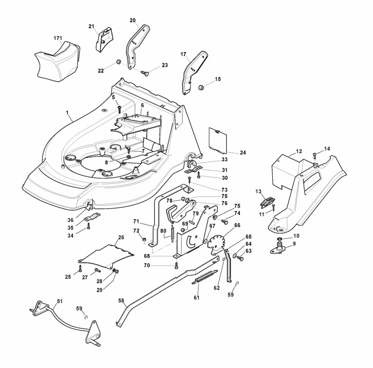 Hier finden Sie alle Ersatzteile von Castelgarden Benzinrasenmäher ab 2016 NP 534 TR - B (ID 292155023/16) aus der Zeichnung Gehäuse und Schnittverstellung (2):
