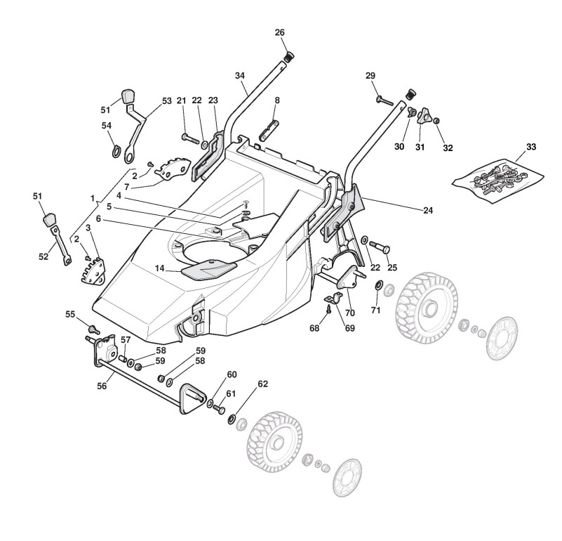Hier finden Sie alle Ersatzteile von Castelgarden Benzinrasenmäher ab 2009 XP 50 B (ID 296486323/Y) aus der Zeichnung Gehäuse und Schnittverstellung: