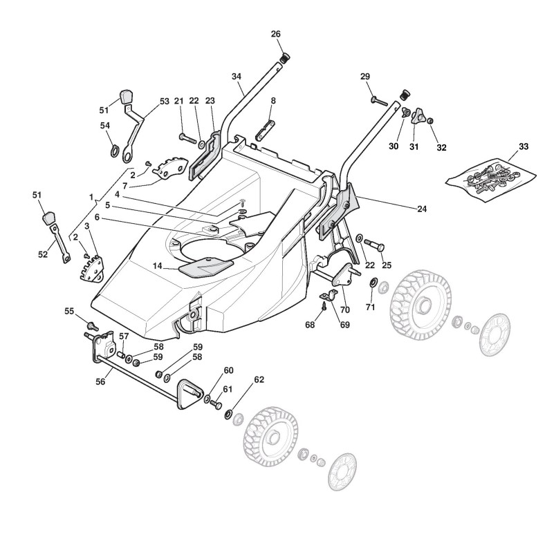 Hier finden Sie alle Ersatzteile von Castelgarden Benzinrasenmäher ab 2008 XP 50 H (ID 296486038/08) aus der Zeichnung Gehäuse und Schnittverstellung: