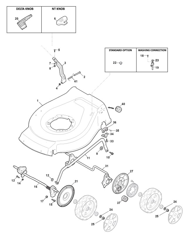 Hier finden Sie alle Ersatzteile von Castelgarden Benzinrasenmäher ab 2014 XS 55 MBS 4 (ID 299533023/MTF) aus der Zeichnung Gehäuse und Schnittverstellung: