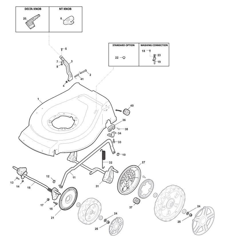 Hier finden Sie alle Ersatzteile von Castelgarden Benzinrasenmäher ab 2019 NTL 534 WTR/Q - B (ID 299536927/RFD) aus der Zeichnung Gehäuse und Schnittverstellung: