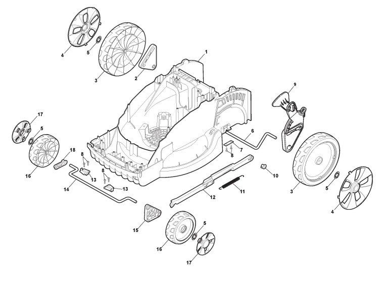 Zeichnung von Castelgarden Elektrorasenmäher EL 340 (Geräte ID 294340063/13) ab 2014: