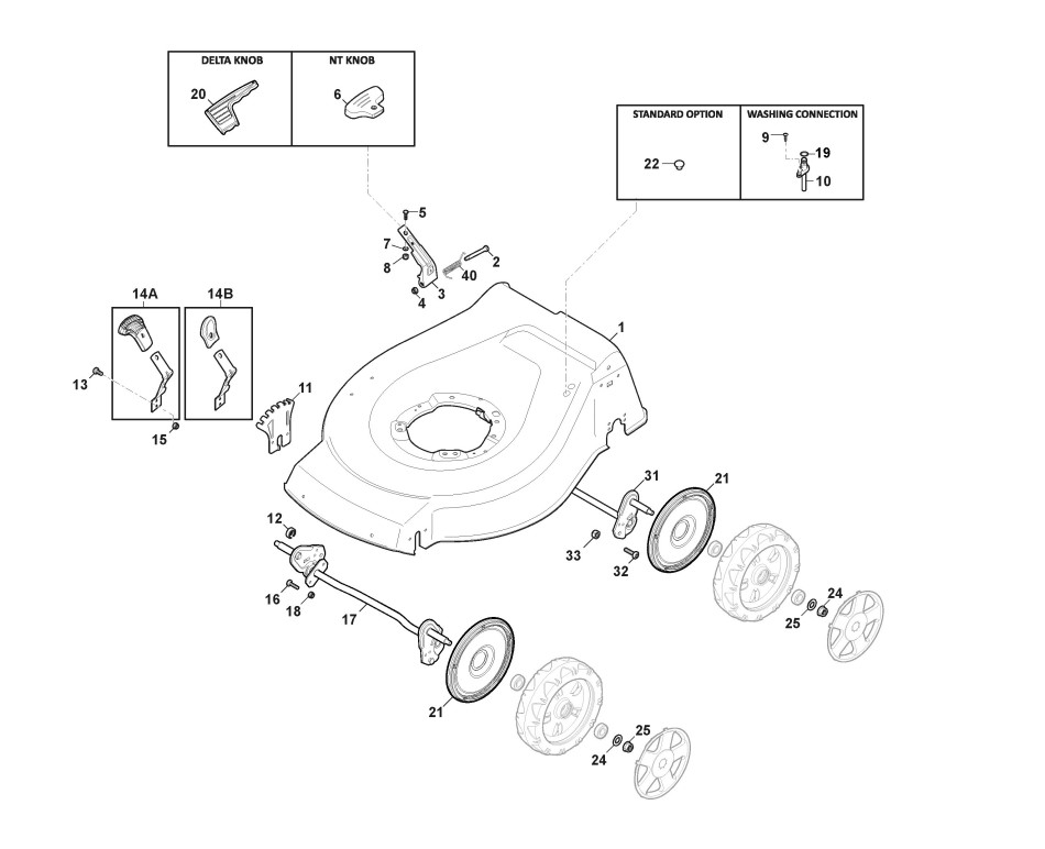 Hier finden Sie alle Ersatzteile von Castelgarden Elektrorasenmäher NT 480 (Geräte ID 299480663/11) ab 2013 aus der Zeichnung Gehäuse und Schnittverstellung: