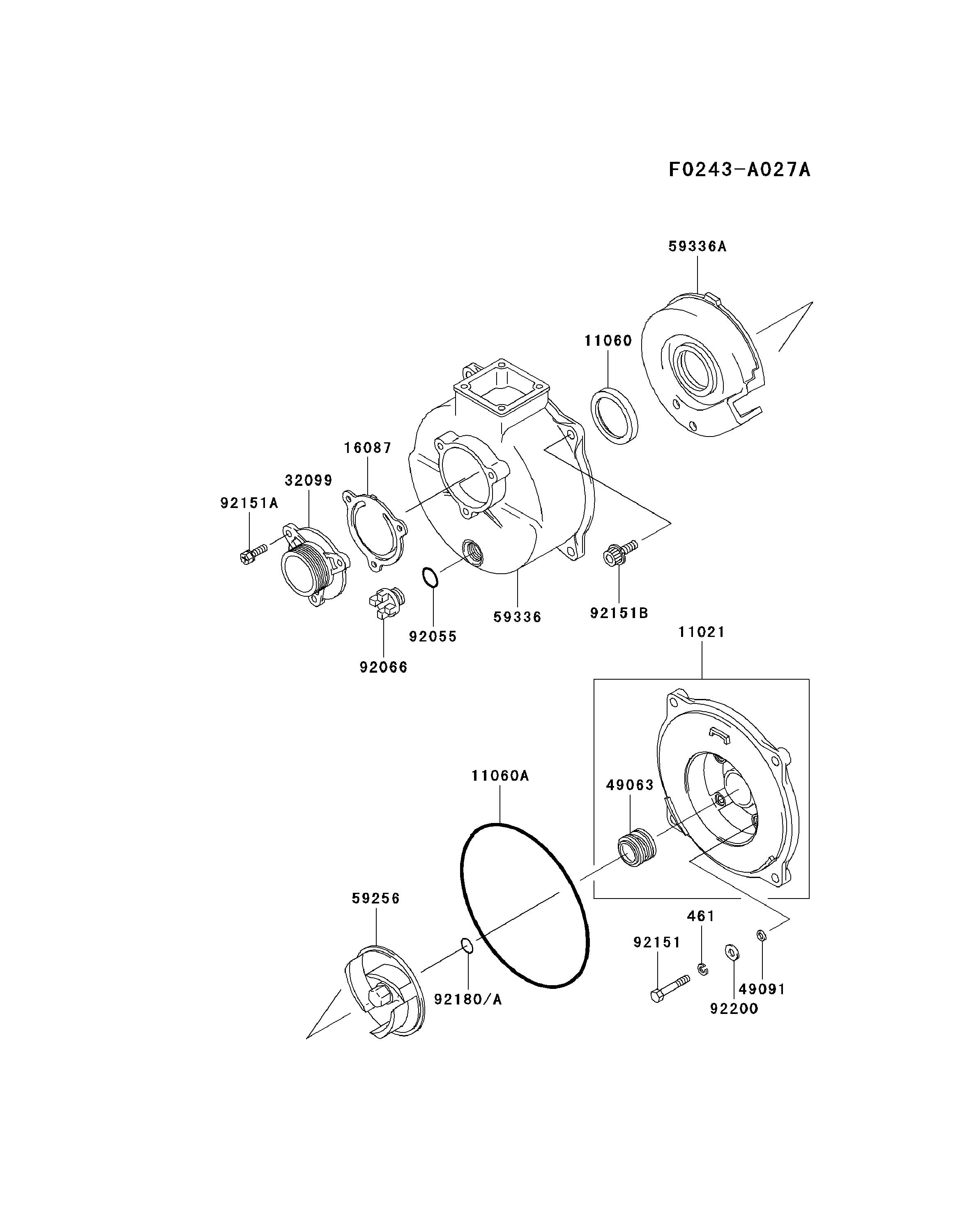 Hier finden Sie alle Ersatzteile von Kawasaki Wasserpumpe HD050A-BS00 (KWS20A) aus der Zeichnung Gehäuse: