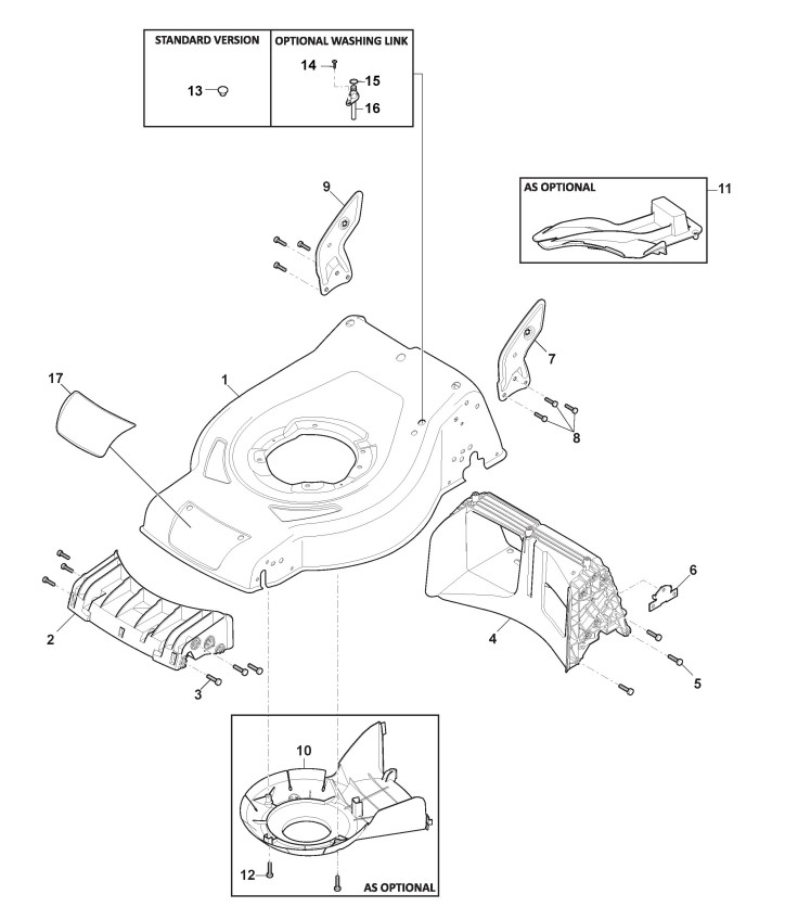 Hier finden Sie alle Ersatzteile von Castelgarden Batterierasenmäher XC 43 Li (Geräte ID 295441063/C19) ab 2019 aus der Zeichnung Gehäuse: