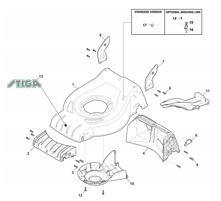Hier finden Sie alle Ersatzteile von Stiga Benzin-Rasenmäher ab 2020 Combi 48 SQ (Geräte Nr 295486848/ST1) aus dem Zeichnungsblatt Gehäuse: