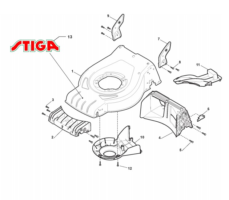 Hier finden Sie alle Ersatzteile von Stiga Elektro-Rasenmäher ab 2013 Combi 48 E (Geräte Nr 295487064/S11) aus dem Zeichnungsblatt Gehäuse: