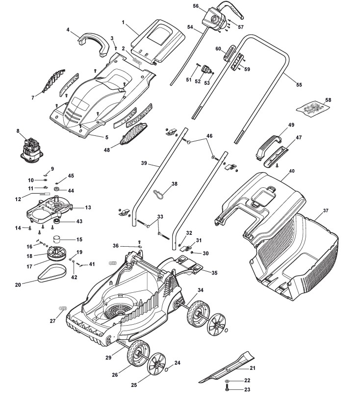 Zeichnung von Castelgarden Elektrorasenmäher E 380 (Geräte ID 293380063/14) ab 2014: