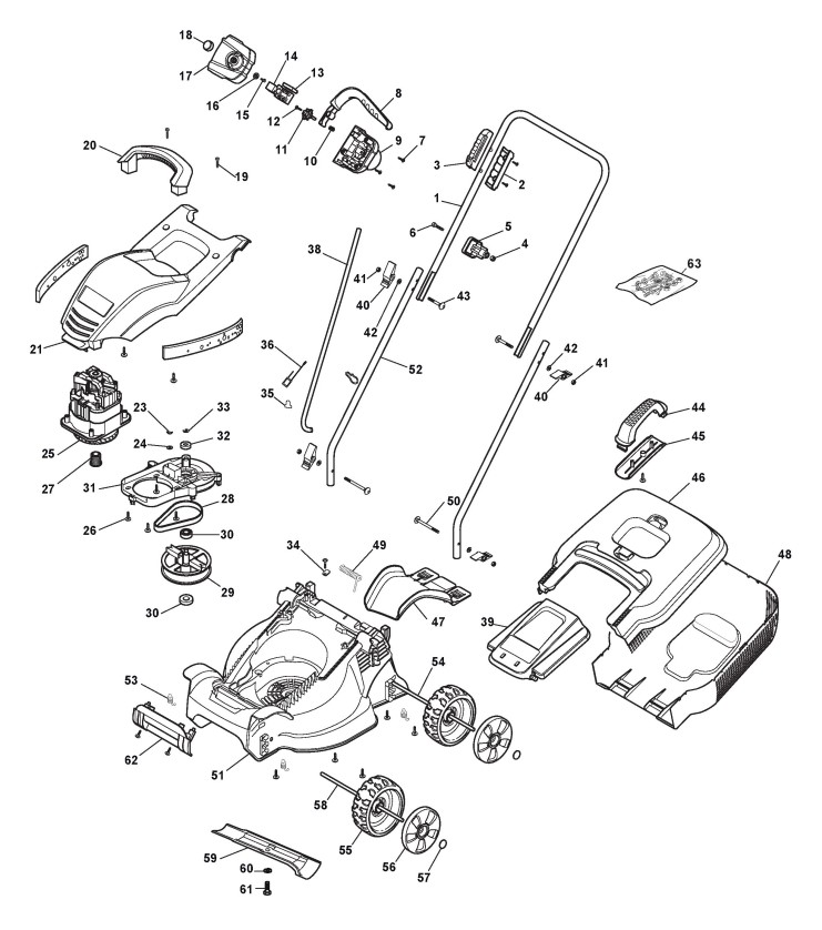 Zeichnung von Castelgarden Elektrorasenmäher 135 EN (Geräte ID 293320063/FER) ab 2014: