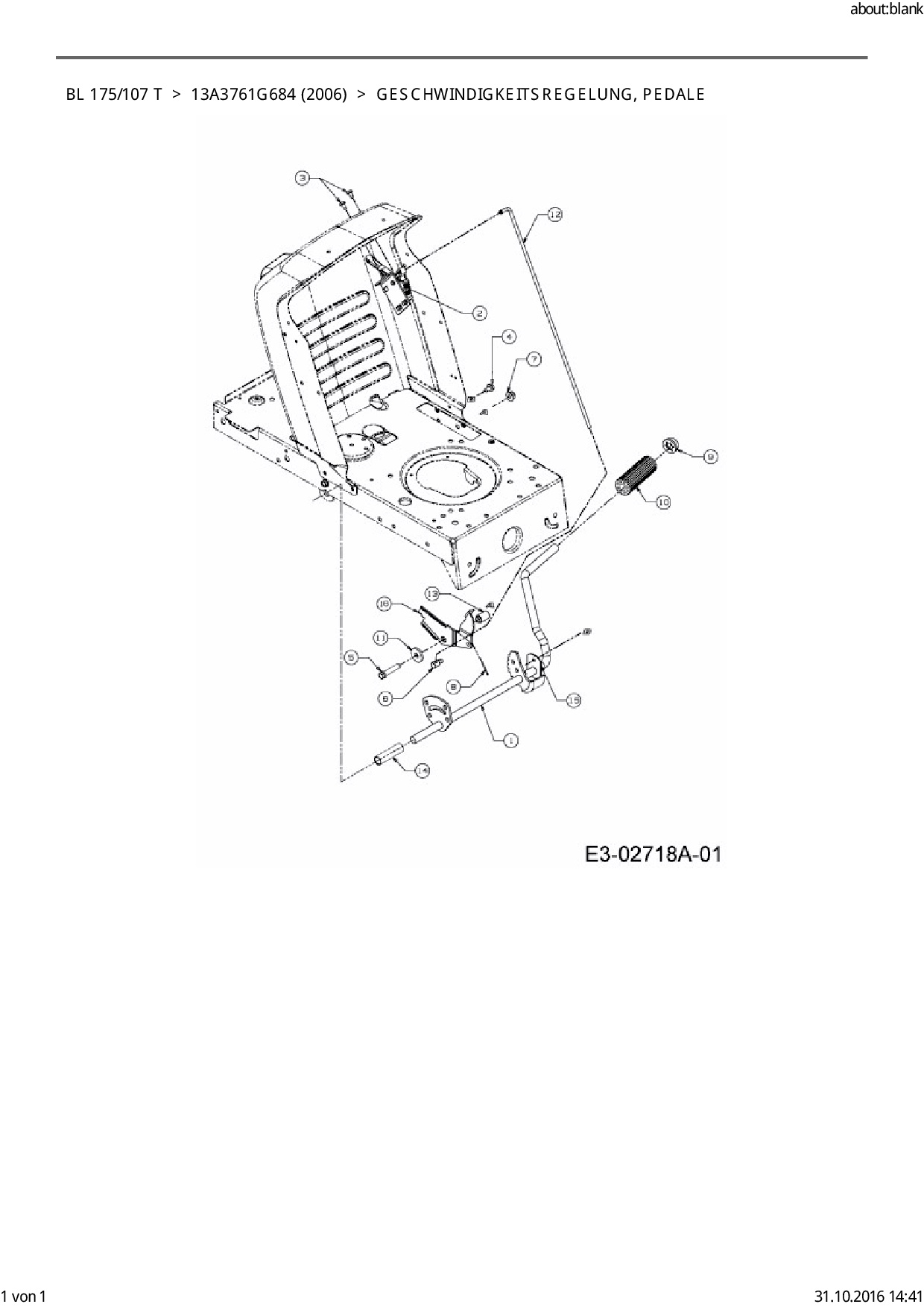 Ersatzteile für Rasentraktor Bolens BL 175/107 T aus der Zeichnung Geschwindigkeitsregelung, Pedale: