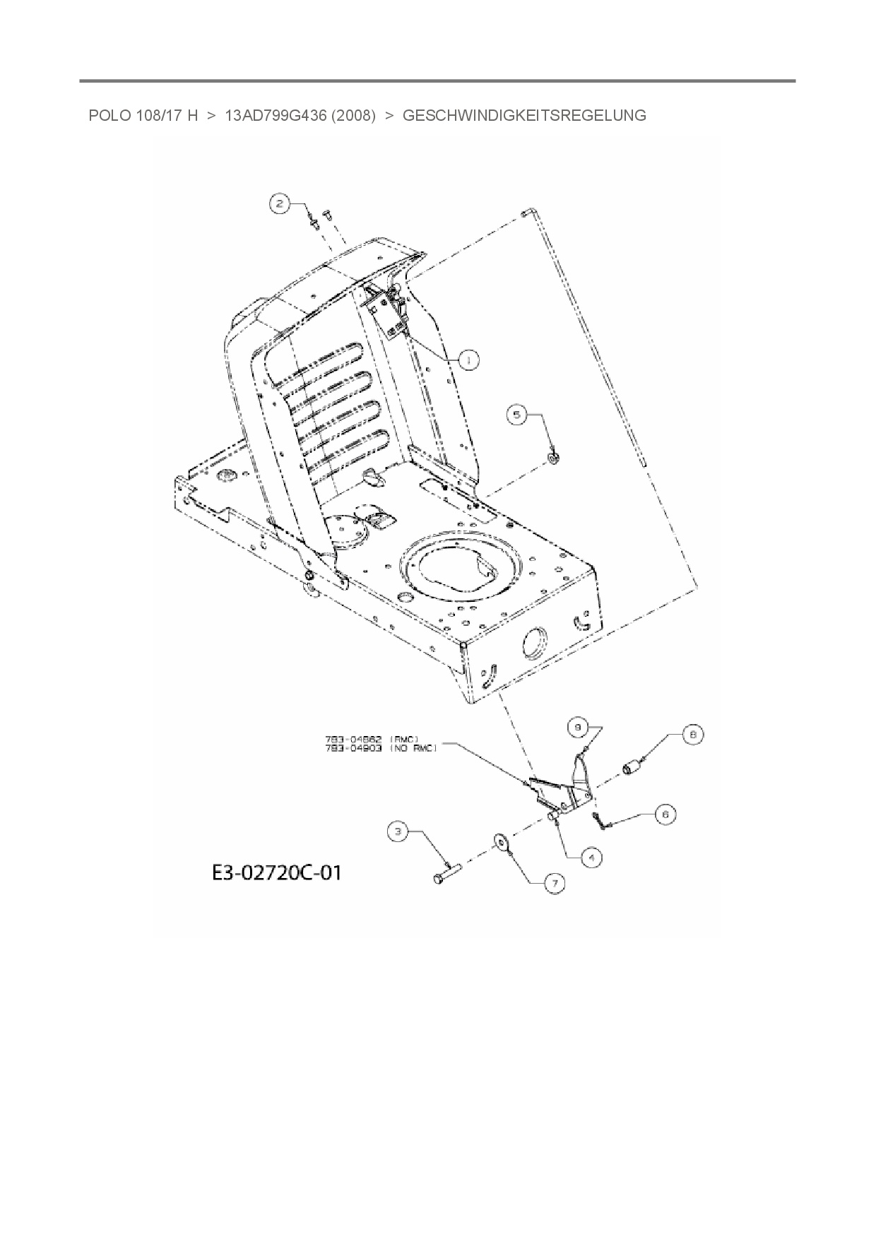 Zeichnung für Oleo-Mac Rasentraktor Polo 108/17 H mit der Geräte-Artikelnr. 13AD799G436 ab Baujahr 2008: