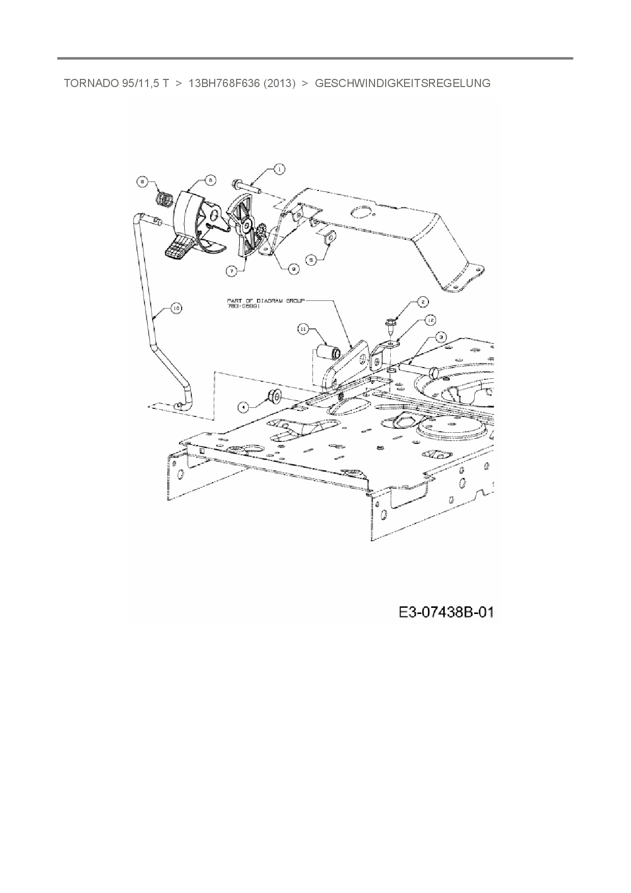 Zeichnung für Oleo-Mac Rasentraktor Tornado 95/11,5 T mit der Geräte-Artikelnr. 13BH768F636 ab Baujahr 2013: