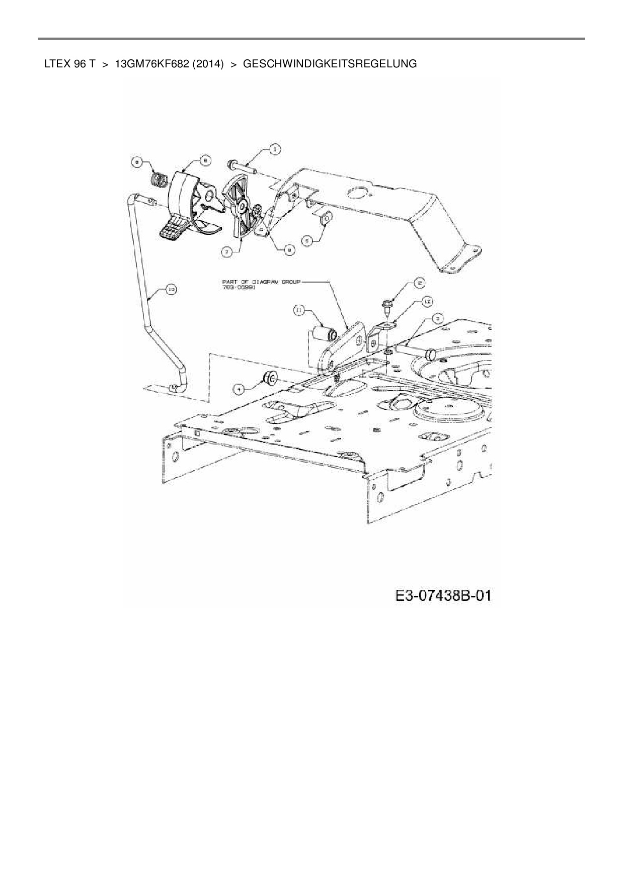 Ersatzteile für Rasentraktor MTD LTEX 96 T aus der Zeichnung Geschwindigkeitsregelung: