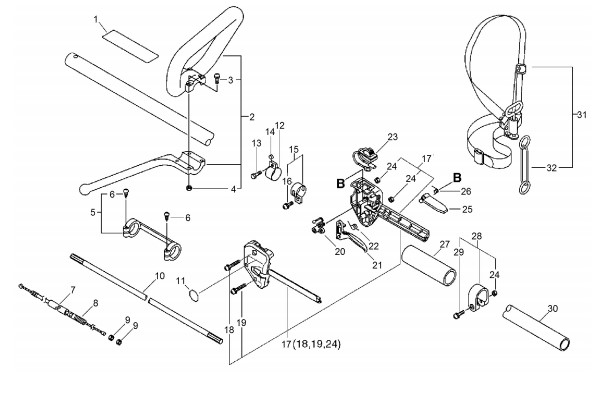 Gestänge, Griff, Tragegurt bis S.-Nr.: 047131