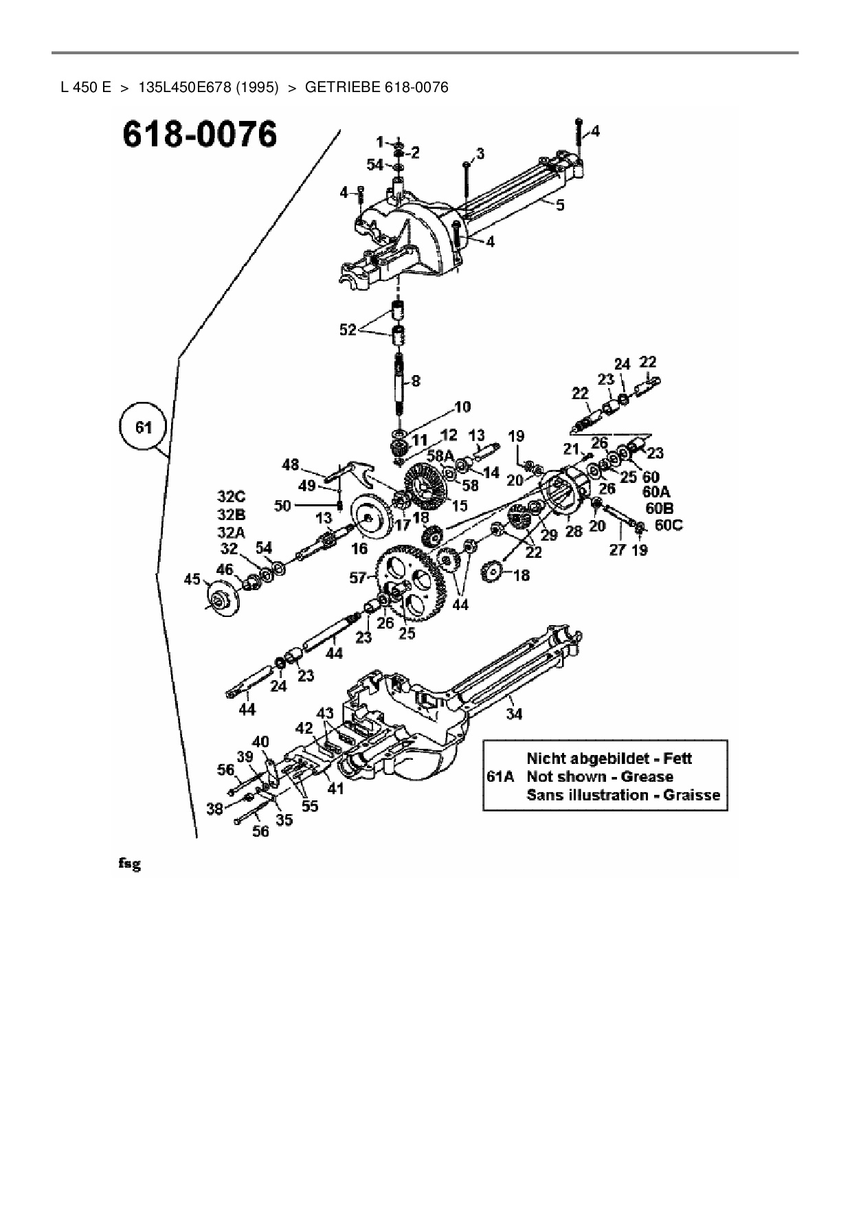 Download Ersatzteil-Zeichnung MTD L 450 E Zeichnung Getriebe 618-0076 (PDF-Format)