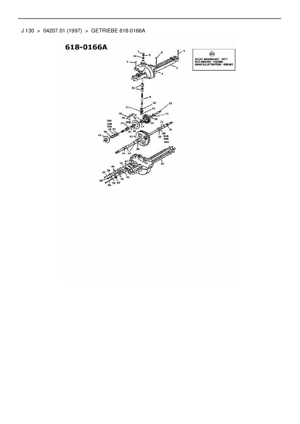 Ersatzteile für Rasentraktor MTD J 130 aus der Zeichnung Getriebe 618-0166A: