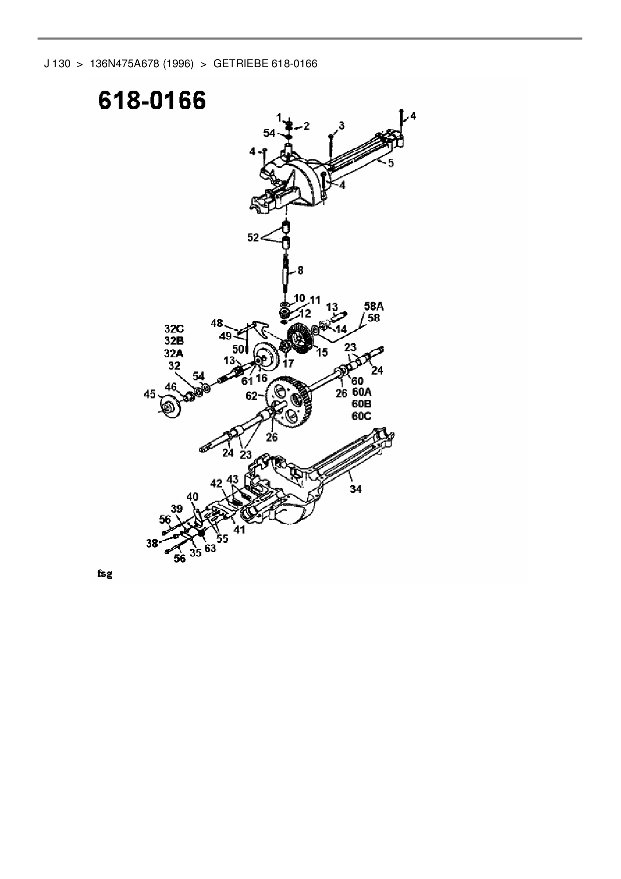 Ersatzteile für Rasentraktor MTD J 130 aus der Zeichnung Getriebe 618-0166:
