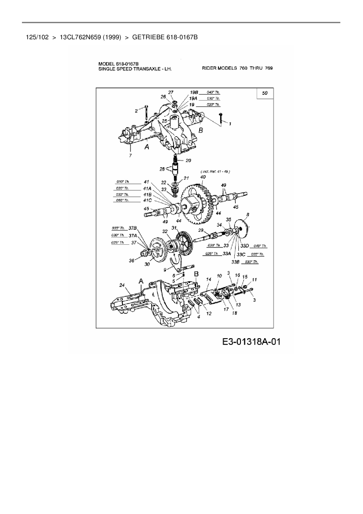 Download Ersatzteil-Zeichnung Mastercut 125/102 Zeichnung Getriebe 618-0167B (PDF-Format)