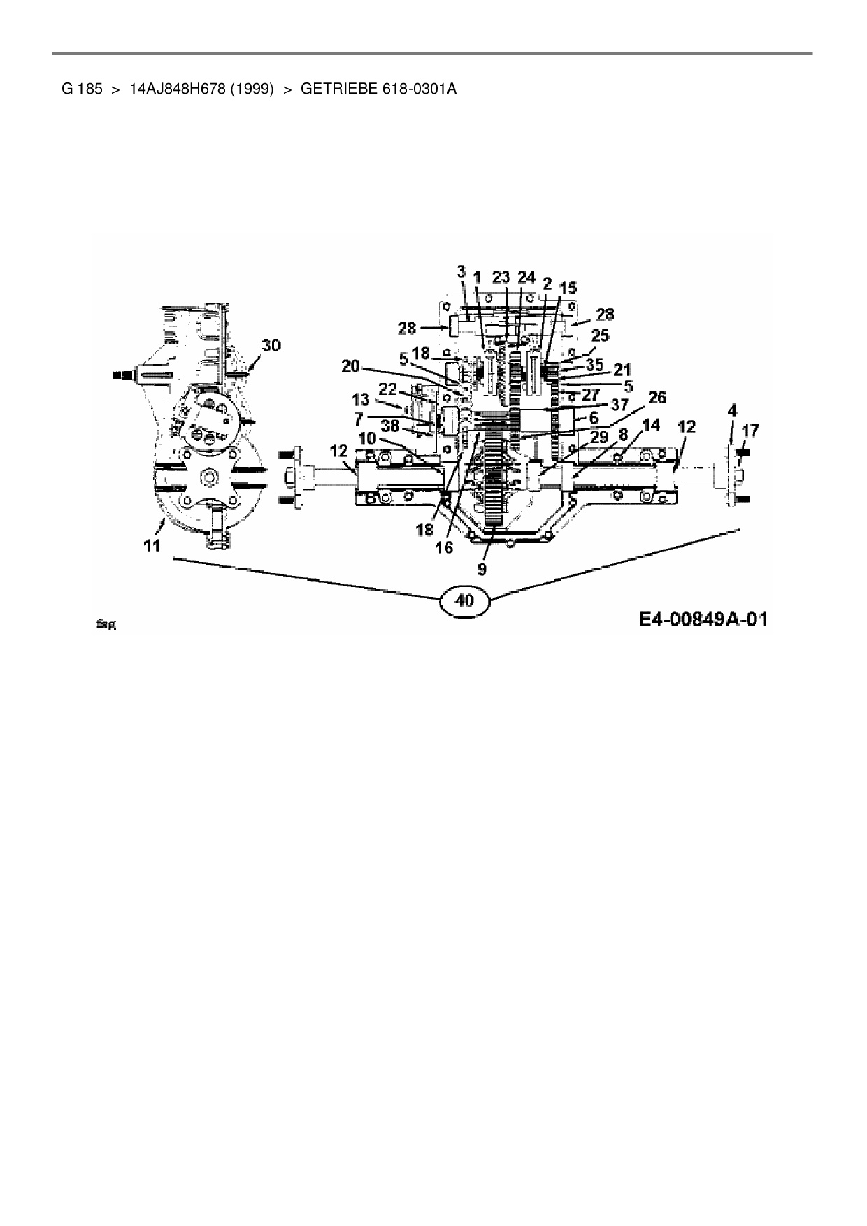 Ersatzteile für Gartentraktor MTD G 185 aus der Zeichnung Getriebe 618-0301A: