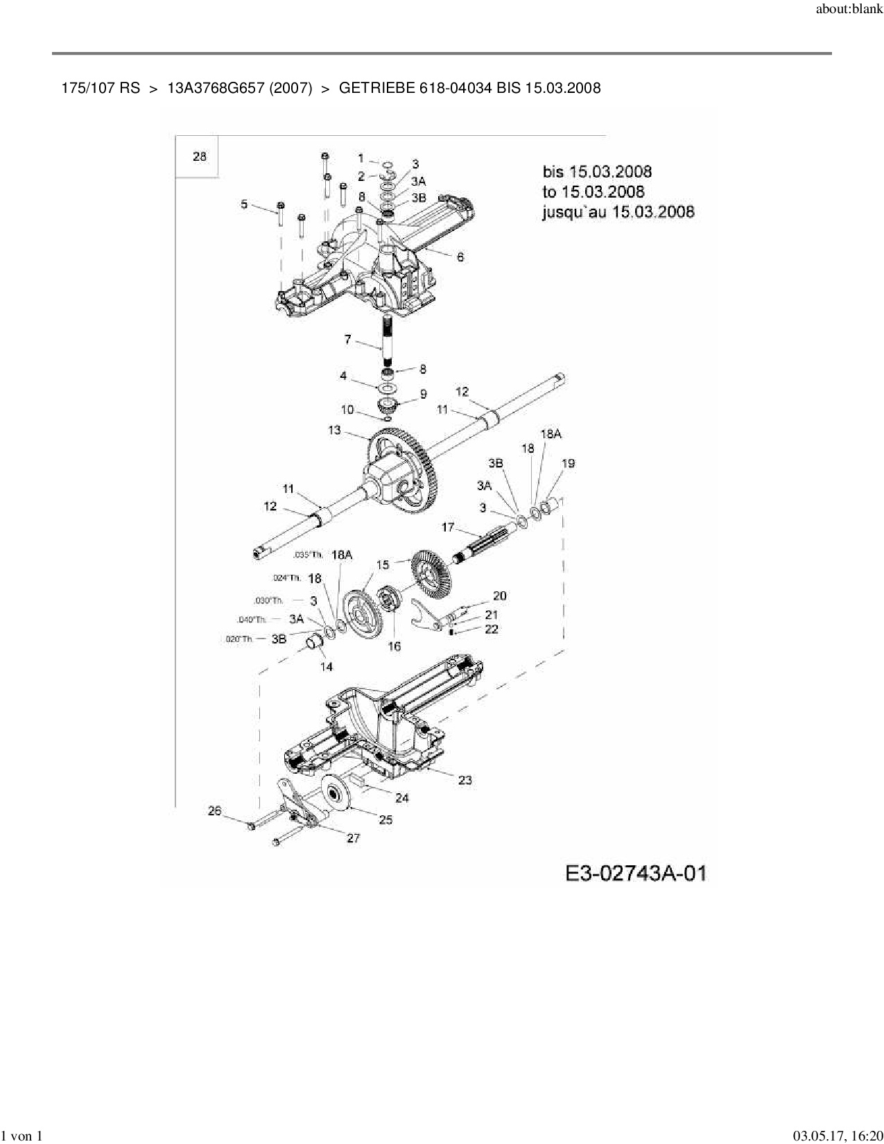 Ersatzteile für Rasentraktor Mastercut 175/107 RS aus der Zeichnung Getriebe 618-04034 bis 15.03.2008: