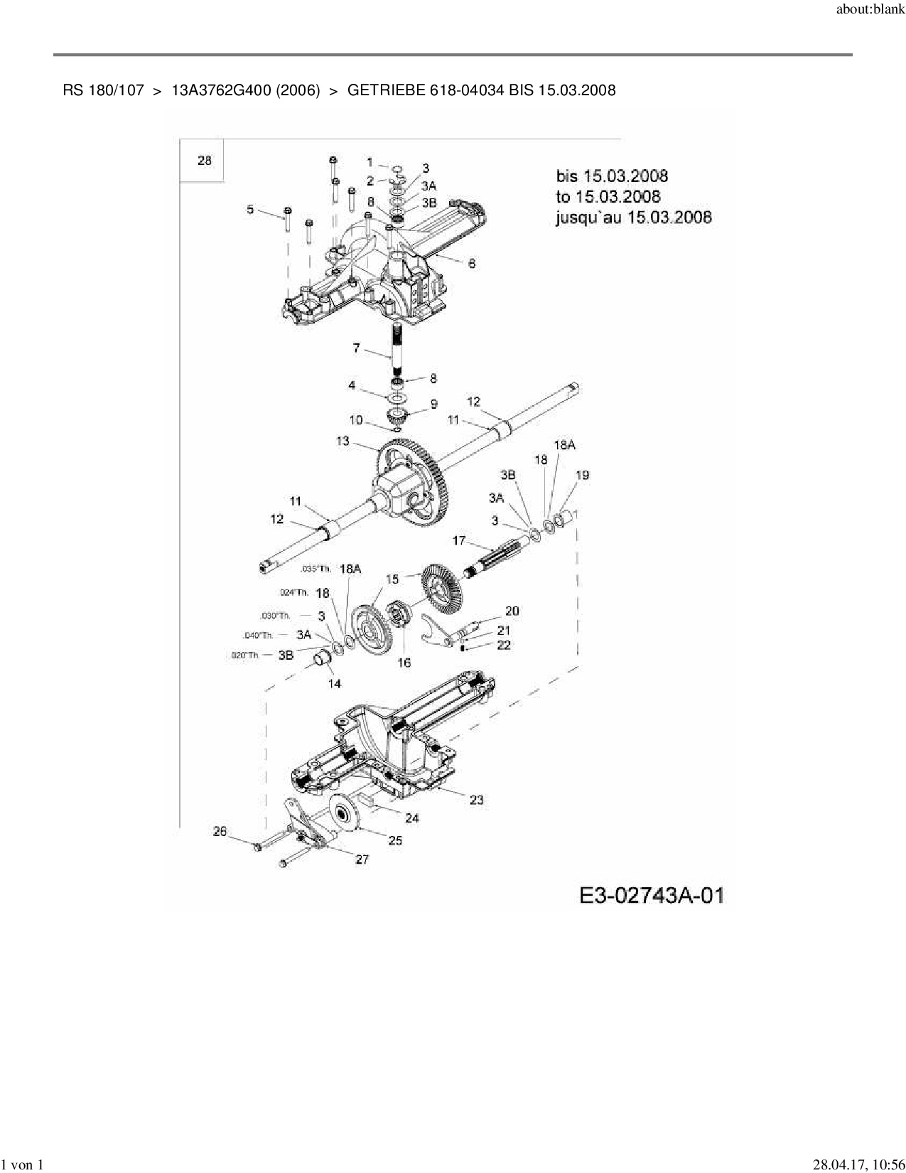 Ersatzteile für Rasentraktor MTD RS 180/107 aus der Zeichnung Getriebe 618-04034 bis 15.03.2008: