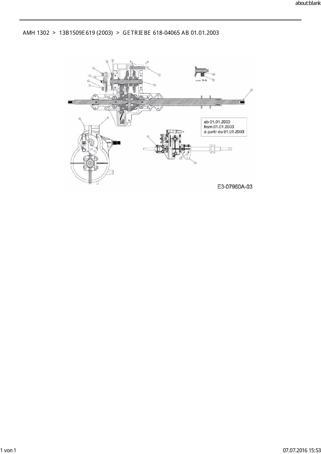 Ersatzteile für Rasentraktor FLEURELLE AMH 1302 aus der Zeichnung Getriebe 618-04065 ab 01.01.2003: