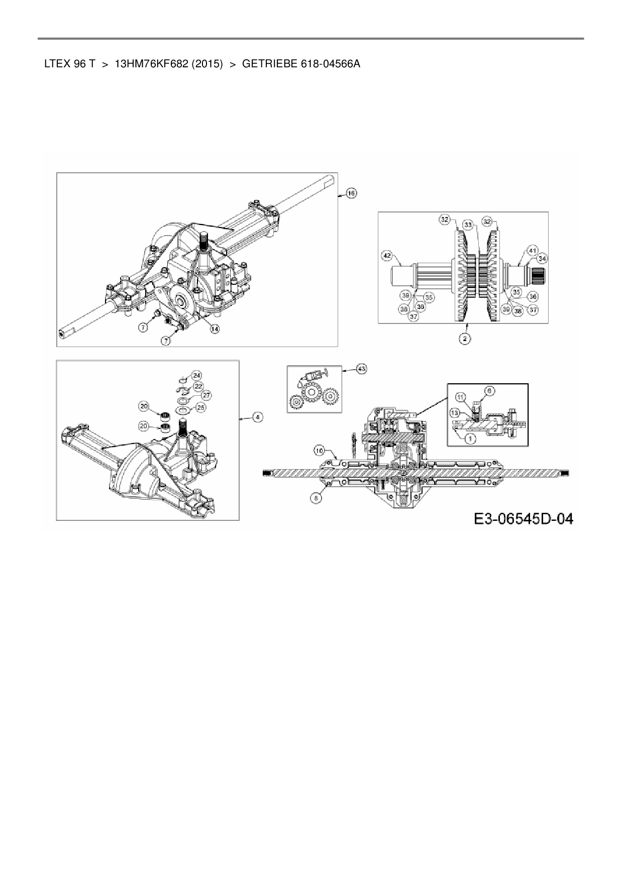 Ersatzteile für Rasentraktor MTD LTEX 96 T aus der Zeichnung Getriebe 618-04566A: