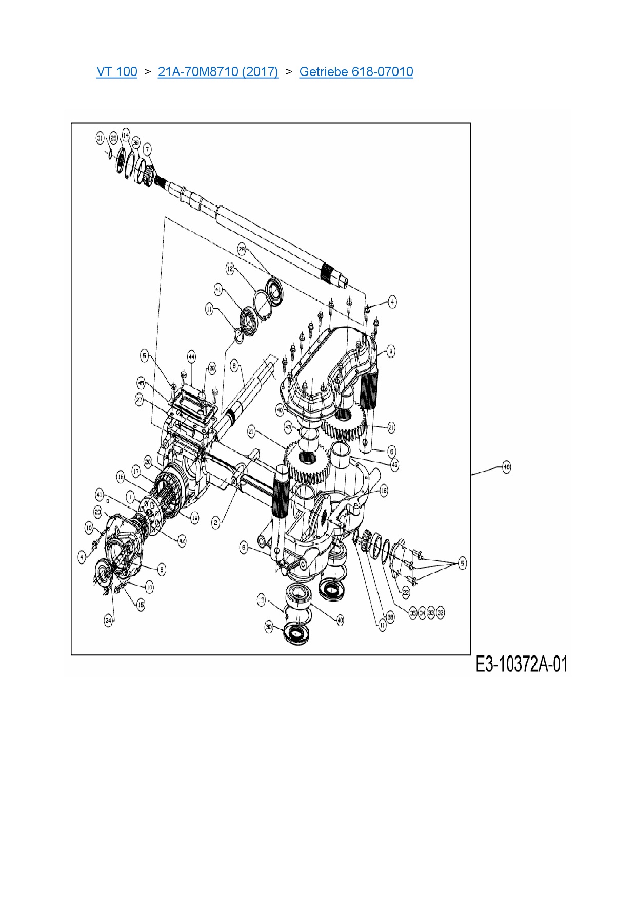Ersatzteile für Motorhacke Cub Cadet VT 100 aus der Zeichnung Getriebe 618-07010: