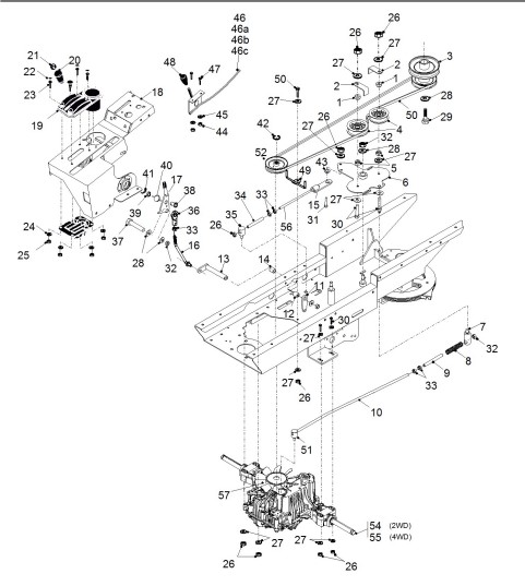 Zeichnung von ECHO-Motorgeräte Rasentraktoren X-Serie X-Serie Bj. 2007-2009 Getriebe, Gas-, Bremshebel: