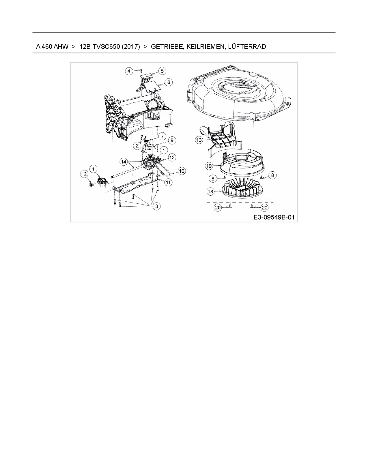 Ersatzteile für Motormäher mit Antrieb Wolf-Garten A 460 AHW aus der Zeichnung Getriebe, Keilriemen, Lüfterrad: