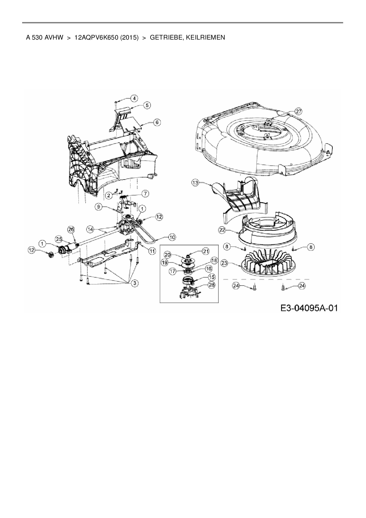 Ersatzteile für Motormäher mit Antrieb Wolf-Garten A 530 AVHW aus der Zeichnung Getriebe, Keilriemen: