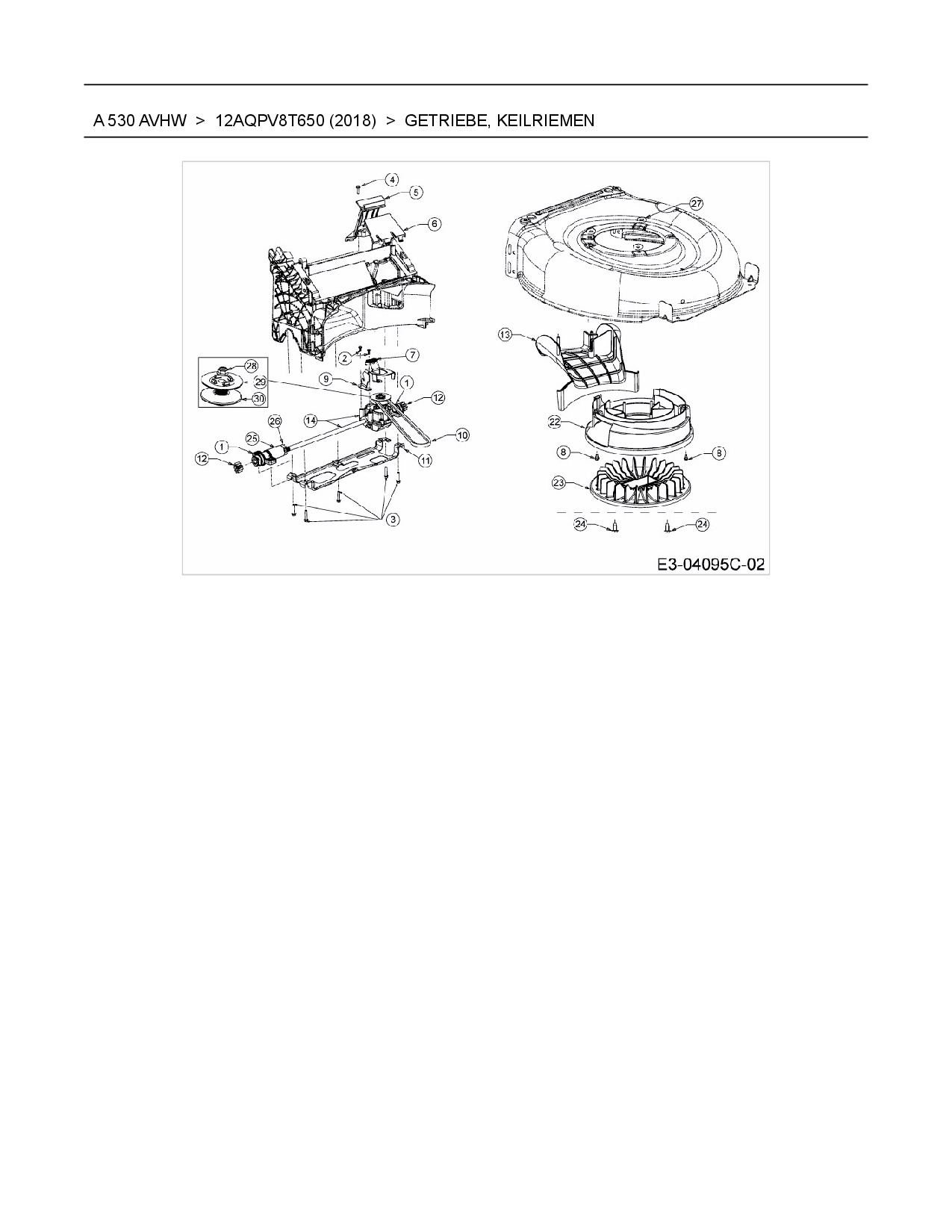 Ersatzteile für Motormäher mit Antrieb Wolf-Garten A 530 AVHW aus der Zeichnung Getriebe, Keilriemen: