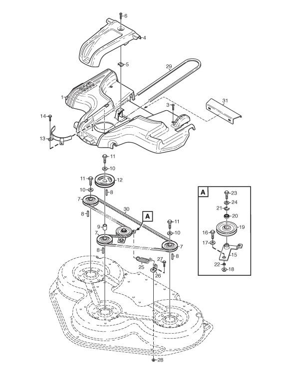 Zeichnungen von Stiga Frontaufsitzmäher Park Mähdecks mit Geräte Nr. 13-2938-39 ab Baujahr 2006
