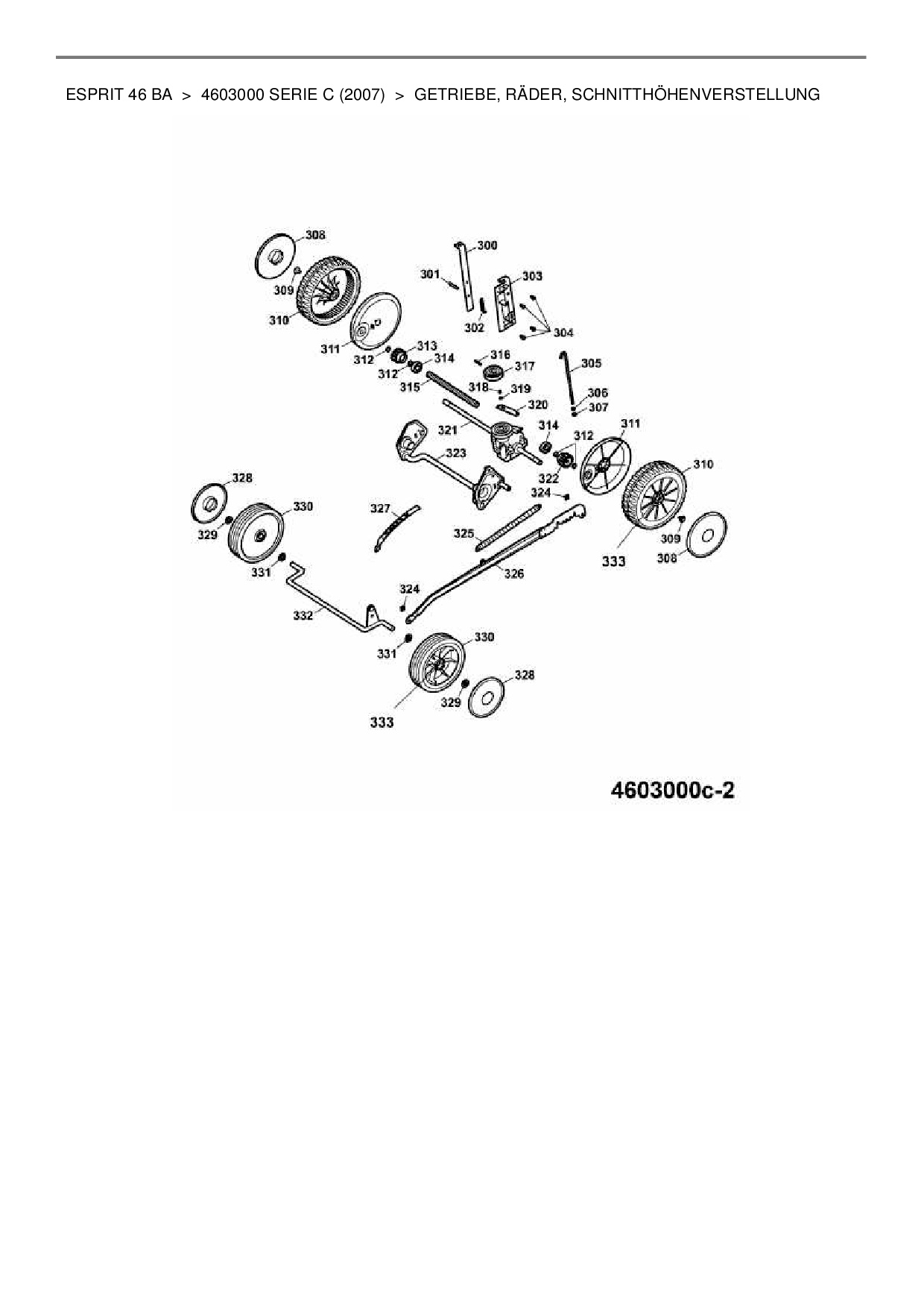 Zeichnung für Wolf-Garten Motormäher mit Antrieb Esprit 46 BA mit der Geräte-Artikelnr. 4603000 Serie C ab Baujahr 2007: