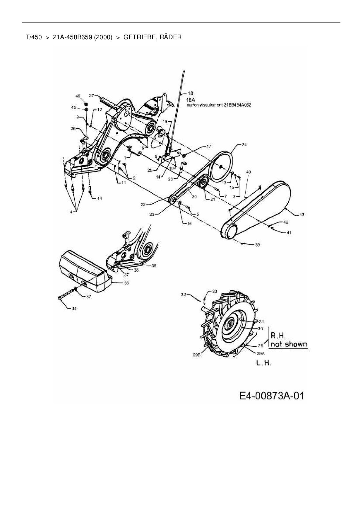 Ersatzteile für Motorhacke Mastercut T/450 aus der Zeichnung Getriebe, Räder: