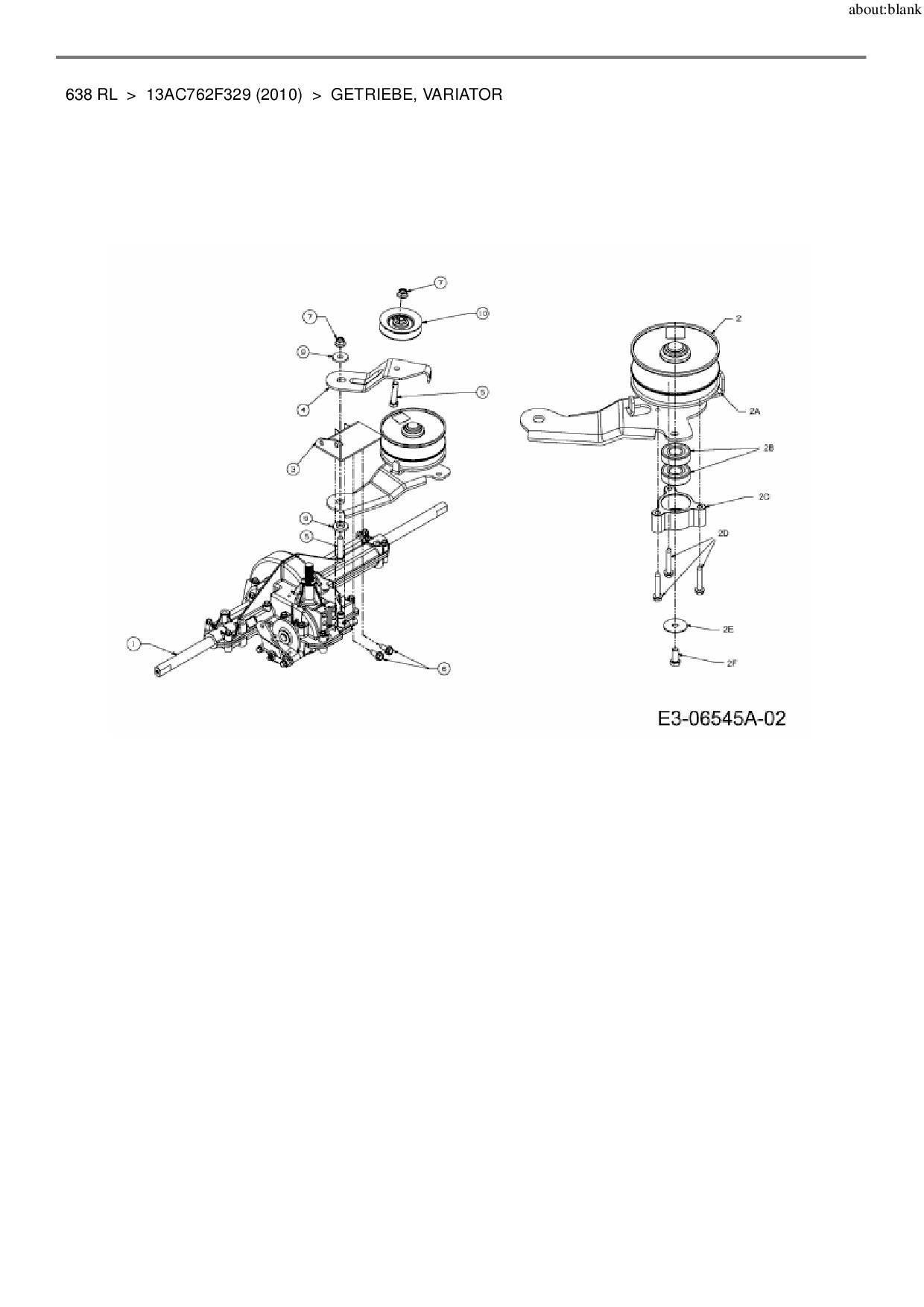 Ersatzteile für Rasentraktor MTD 638 RL aus der Zeichnung Getriebe, Variator: