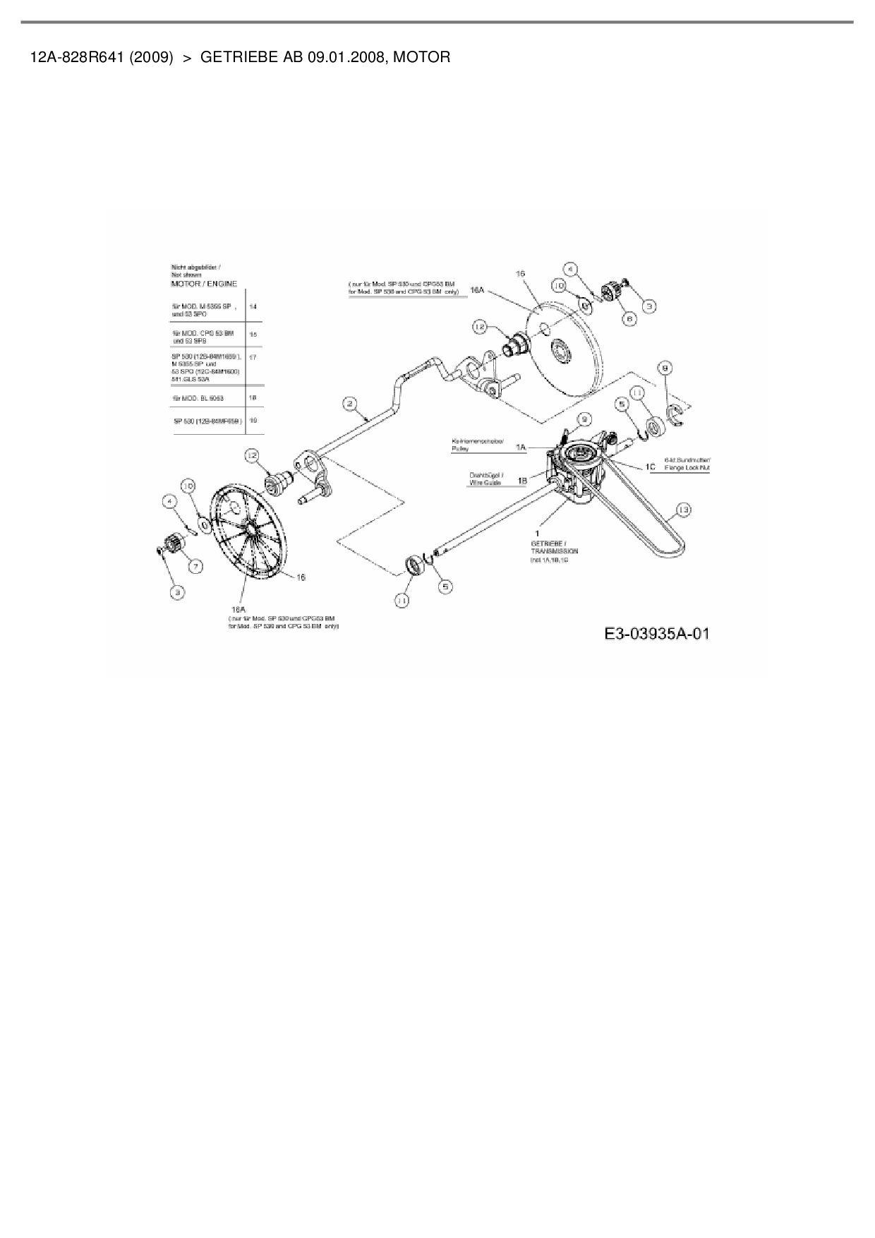 Ersatzteile für Motormäher mit Antrieb Central Park CPG 53 BM aus der Zeichnung Getriebe ab 09.01.2008, Motor: