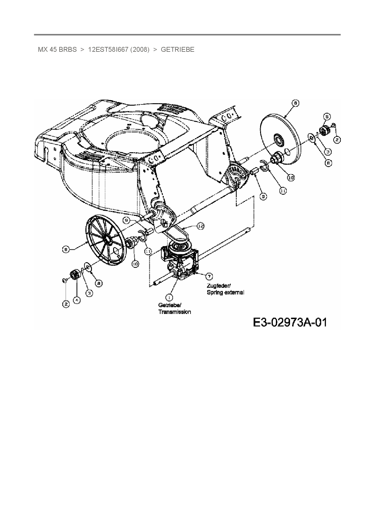 Ersatzteile für Motormäher mit Antrieb Merox MX 45 BRBS aus der Zeichnung Getriebe: