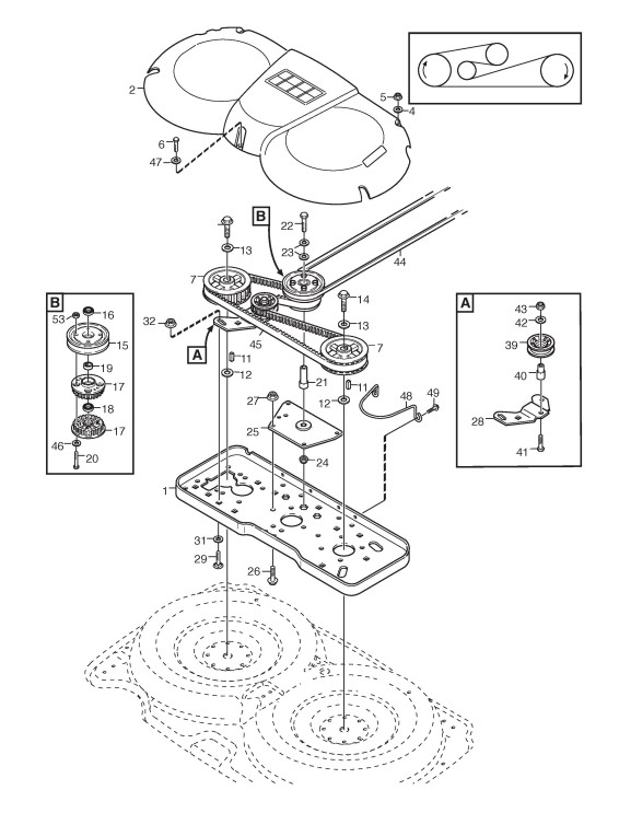 Zeichnungen von Stiga Frontaufsitzmäher Park Mähdecks mit Geräte Nr. 13-2951-16 ab Baujahr 2003