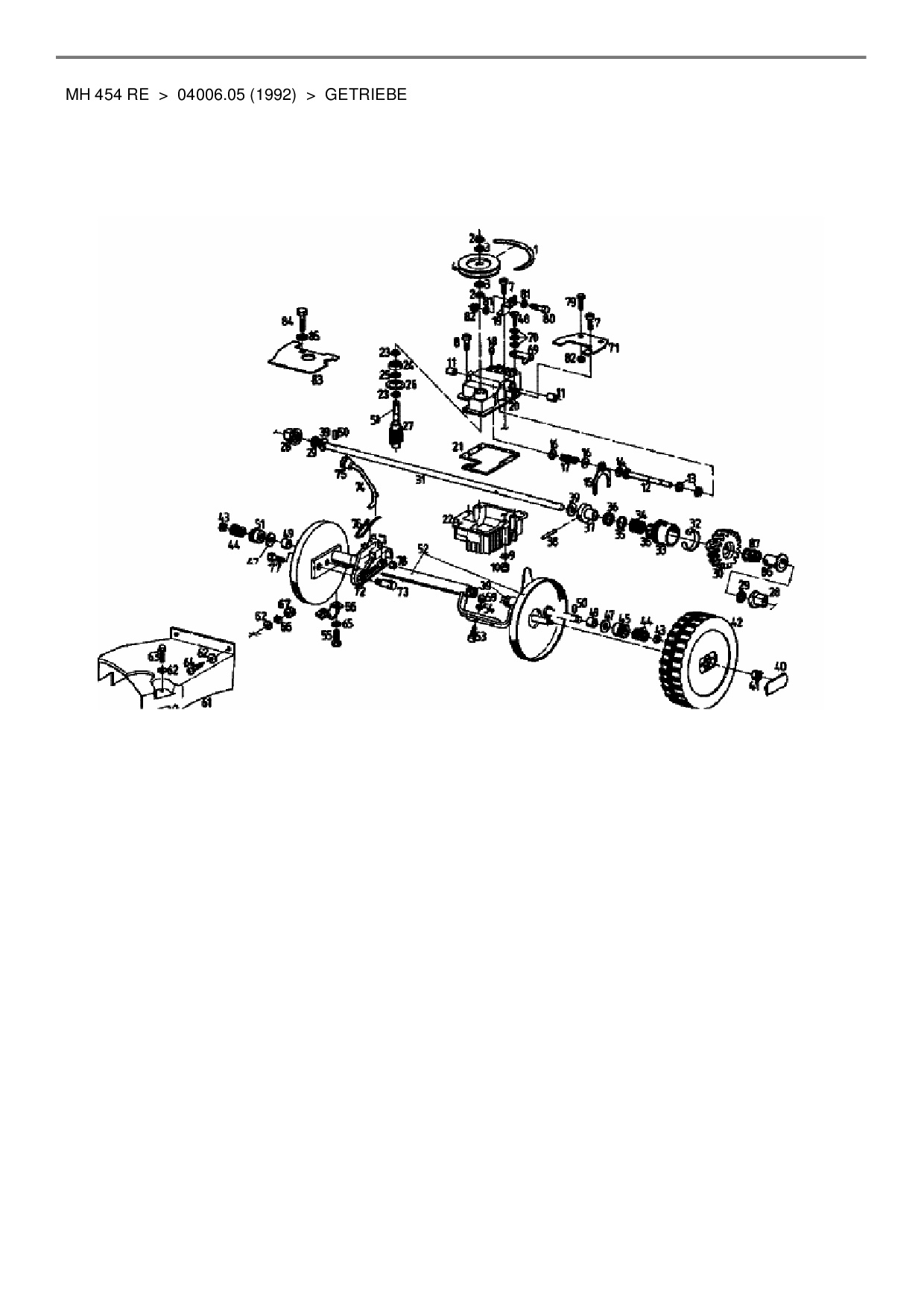 Ersatzteile für Motormäher mit Antrieb Gutbrod MH 454 RE aus der Zeichnung Getriebe:
