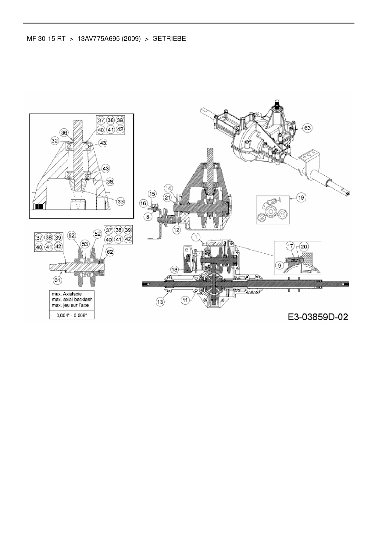 Ersatzteile für Rasentraktor Massey Ferguson MF 30-15 RT aus der Zeichnung Getriebe:
